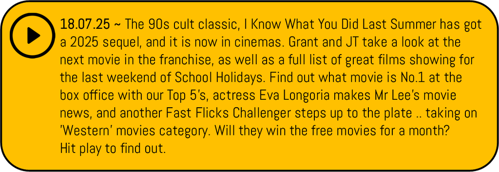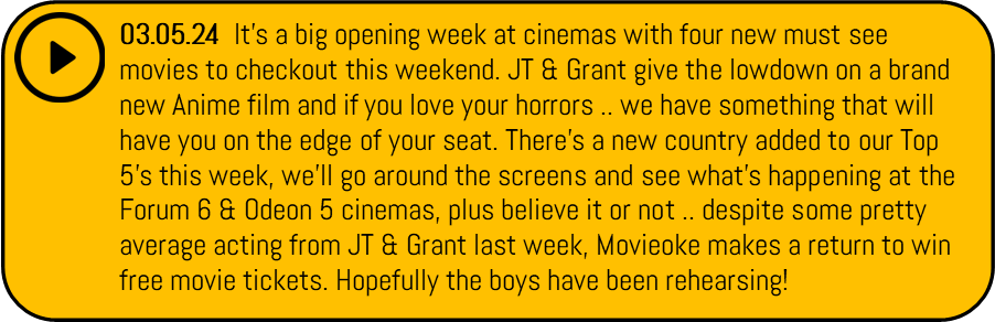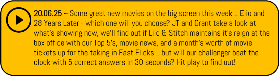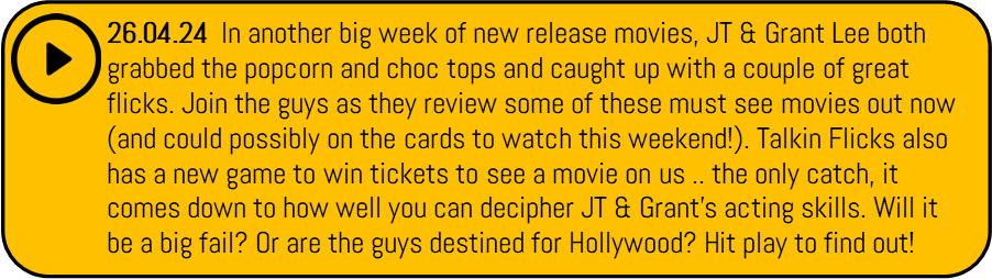 JT and Mr Lee talk all things movies, from new releases to classic movies. Hear what’s been going on in the movies.
